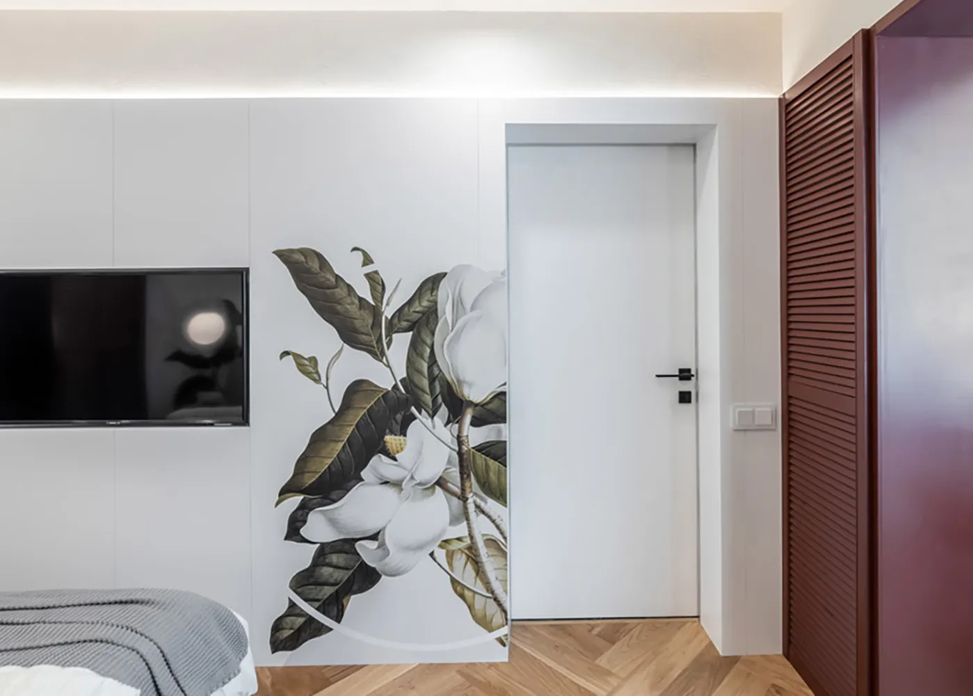 Благодаря продуманному дизайну и вниманию к деталям, спальня превратилась в идеальное место для отдыха и восстановления сил. Как отметила команда проекта, даже такие элементы, как розетки и выключатели, сыграли важную роль в создании целостного образа.